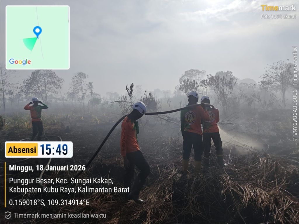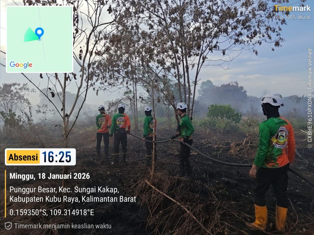 Pontianak, Kalbar,- Tim SAR Direktorat Samapta Polda Kalbar kembali melaksanakan patroli karhutla di wilayah Kabupaten Kubu Raya. Kegiatan ini berlangsung pada Minggu, 18 Januari 2026, di Jalan Parit Delima, Desa Punggur Kecil, setelah ditemukan titik api yang kembali menyala akibat kondisi cuaca panas.