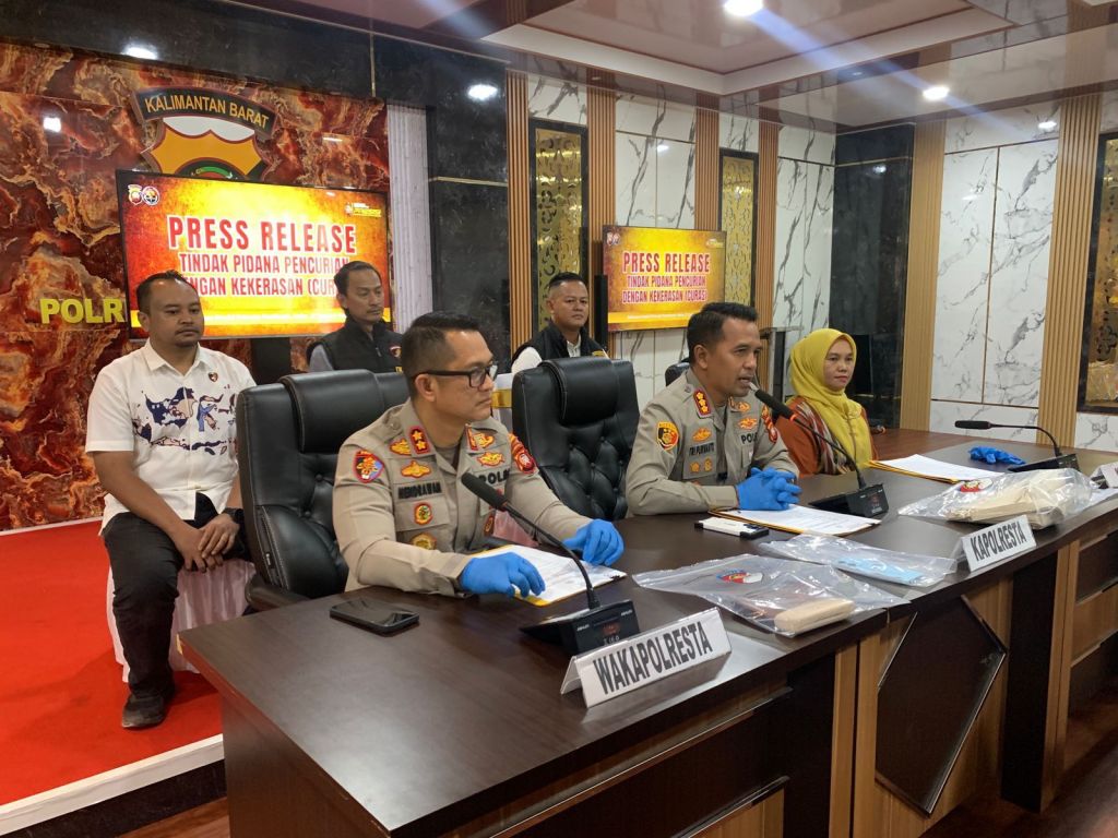 Pontianak, Polda Kalbar – Polresta Pontianak menggelar konferensi pers terkait pengungkapan kasus tindak pidana pencurian dengan kekerasan (curas) yang terjadi di wilayah Kota Pontianak, Rabu (21/1).