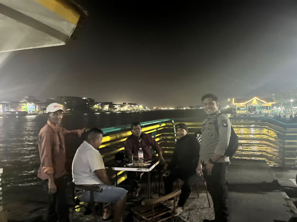 Pontianak, Kalbar – Dalam rangka menjaga situasi keamanan dan ketertiban masyarakat (Kamtibmas), personel Polsek Pontianak Timur melaksanakan patroli dialogis di kawasan Waterfront Pontianak Timur, pada malam hari.