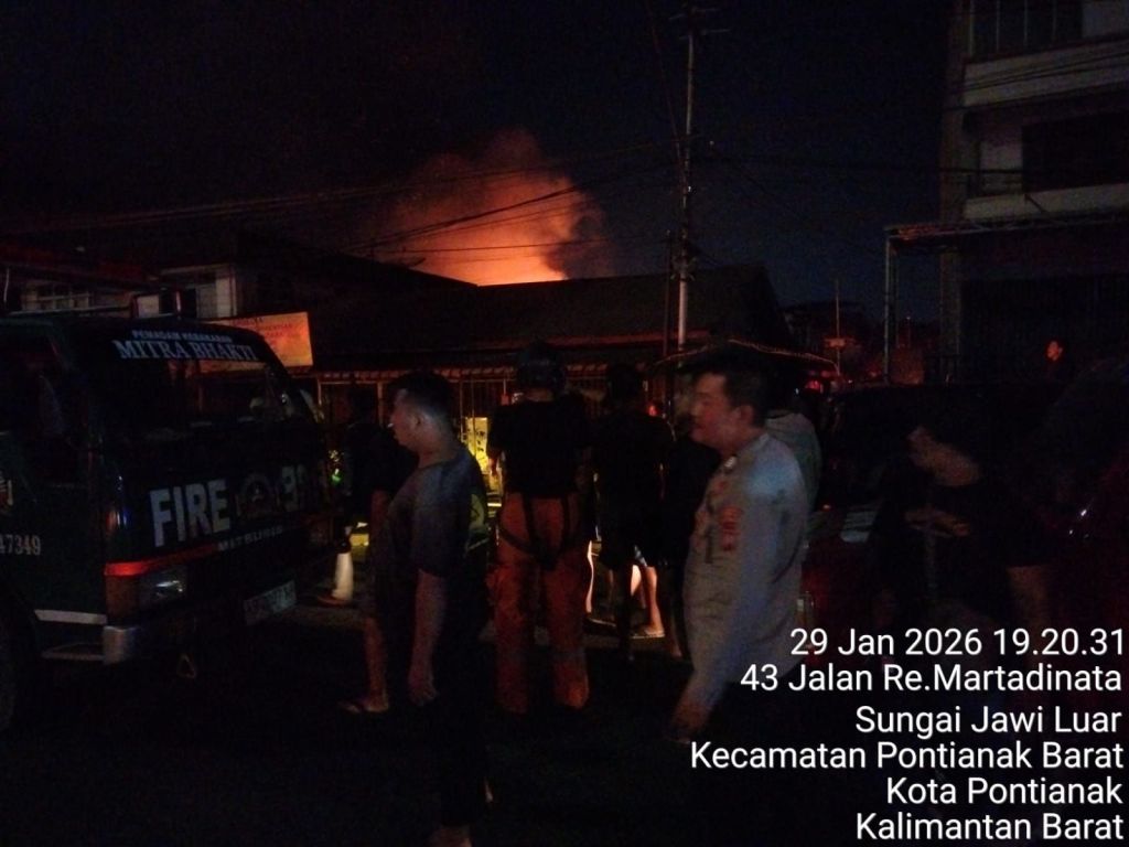 Pontianak, Polda Kalbar – Personel Polsek Pontianak Barat mendatangi dan melaksanakan pengamanan lokasi kebakaran rumah warga yang terjadi di Jalan Komyos Sudarso Gang Bunut, Kelurahan Sei Jawi Luar, Kecamatan Pontianak Barat, pada Kamis malam (29/01/2026).