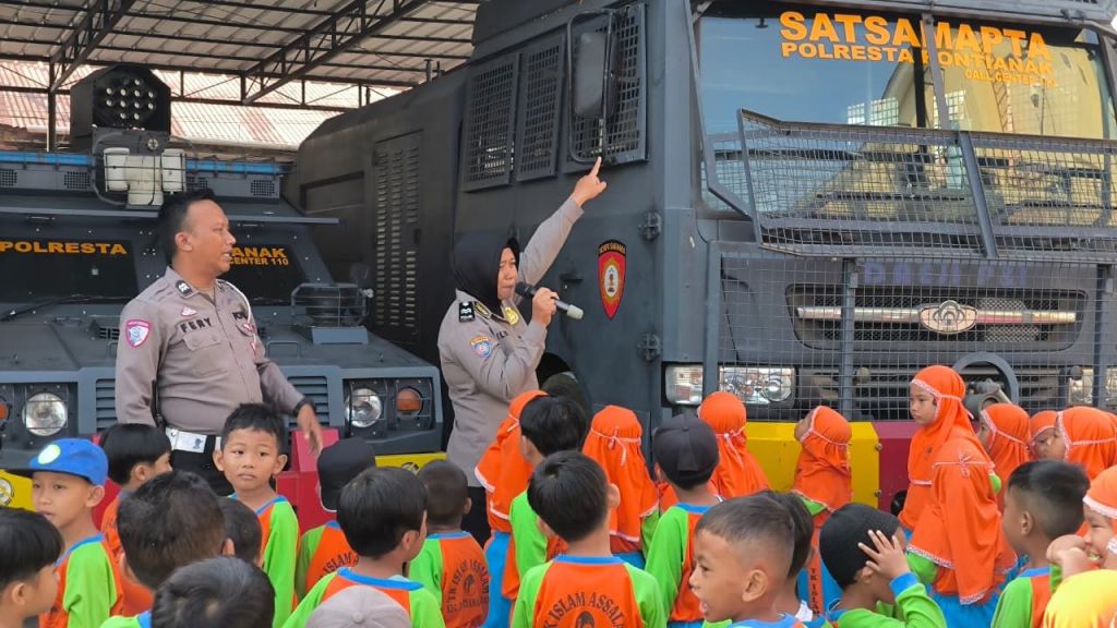 Pontianak ,Polda Kalbar – Dalam rangka menanamkan kedisiplinan serta mengenalkan tugas-tugas Kepolisian sejak usia dini, Satuan Lalu Lintas Polresta Pontianak menerima kunjungan edukatif dari murid-murid TK Islam Assalam ke Polresta Pontianak, pada Jum’at (30/01/2025).