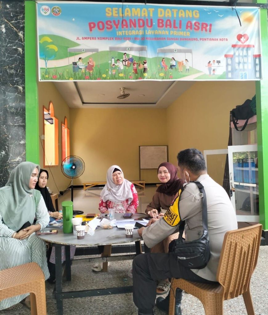 Pontianak, Polda Kalbar – Personel Bhabinkamtibmas Polsek Pontianak Kota, Aiptu Surya Simatupang, melaksanakan kegiatan sambang serta memberikan himbauan keamanan dan ketertiban masyarakat (Kamtibmas) kepada ibu-ibu yang mengikuti kegiatan Posyandu di Posyandu Bali Asri, Jalan Ampera, Komplek Bali Asri I RW 32, Kelurahan Sungai Bangkong, Kecamatan Pontianak Kota, Senin (02/02/2026).