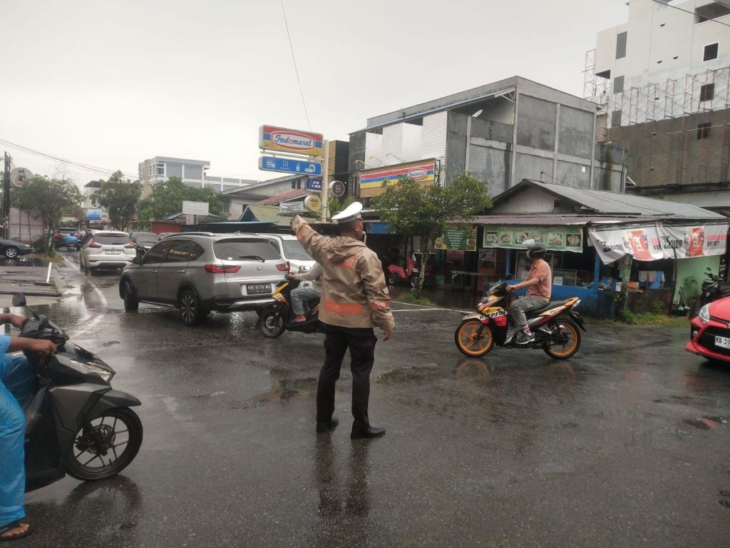 “Hujan bukan halangan bagi kami. Strong point pagi tetap dilaksanakan untuk mencegah kemacetan dan menjaga keselamatan para pengguna jalan,”ujarnya.