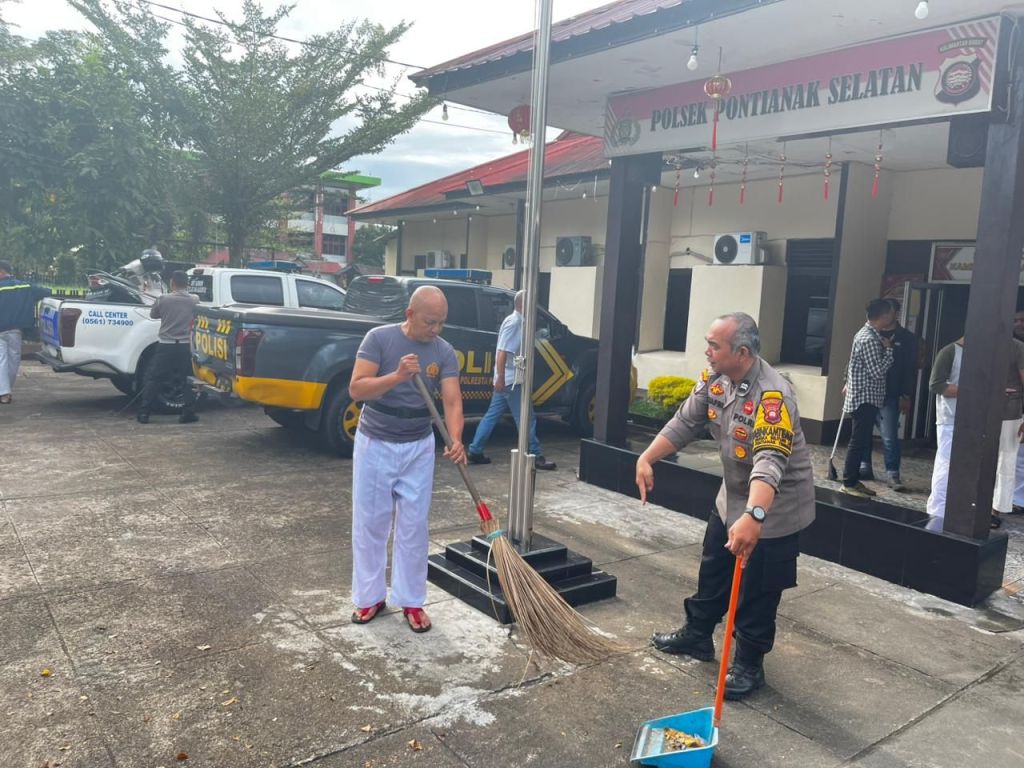 Pontianak Selatan, Polda Kalbar – 5 Februari 2026. Tak hanya sigap menjaga keamanan, Polsek Pontianak Selatan juga menunjukkan kepedulian terhadap kebersihan lingkungan. Dipimpin langsung oleh Kapolsek Pontianak Selatan, seluruh personel turun tangan membersihkan lingkungan sekitar Mako Polsek, mulai dari halaman hingga sudut-sudut yang sering “sembunyi dari sapu”.