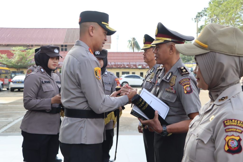 Kapolresta juga menyampaikan terima kasih kepada personel yang purna bakti atas pengabdian dan kontribusi selama bertugas di Polresta Pontianak.