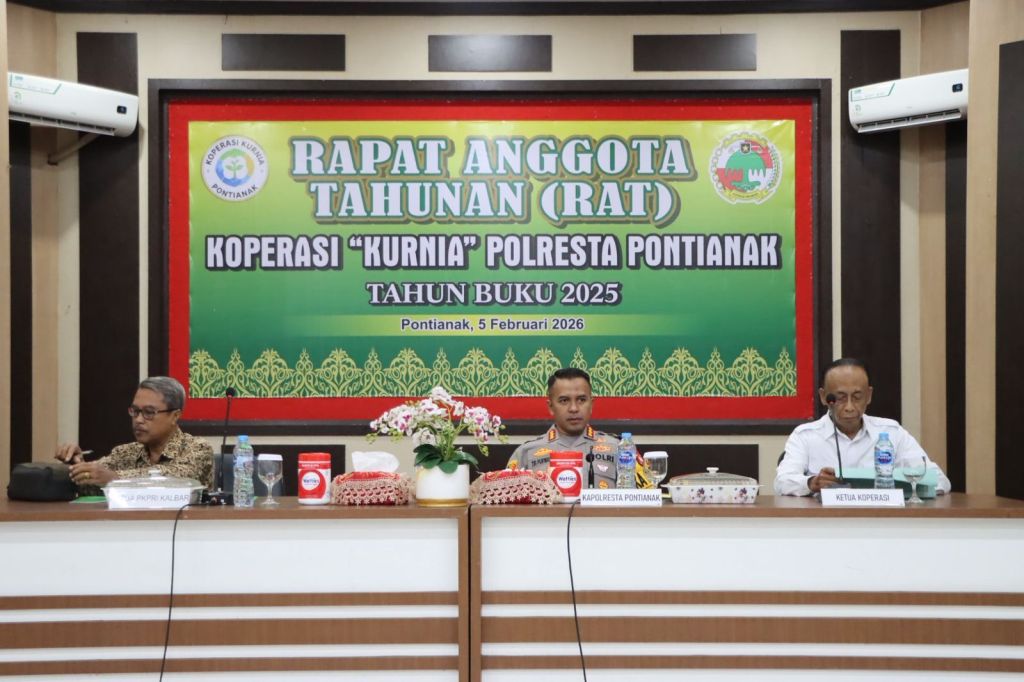 Pontianak, Polda Kalbar — Koperasi Kurnia Polresta Pontianak melaksanakan Rapat Anggota Tahunan (RAT) Tahun Buku 2025 yang digelar di Aula Mapolresta Pontianak, Kamis (5/2).