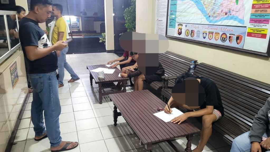 Mengetahui kedatangan petugas beberapa remaja yang diduga hendak tawuran melarikan diri dan kami berhasil mengamankan 5 remaja yang tidak sempat melarikan diri selanjutnya kami bawa ke Polsek Pontianak Utara untuk dinterogasi.Tutur Aris Candra.
