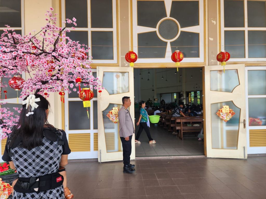 Selain itu, personil juga menyampaikan imbauan kamtibmas kepada jemaat agar tetap waspada terhadap barang bawaan, memarkir kendaraan pada tempat yang telah disediakan, serta segera melaporkan kepada pihak kepolisian apabila menemukan hal-hal yang mencurigakan.
