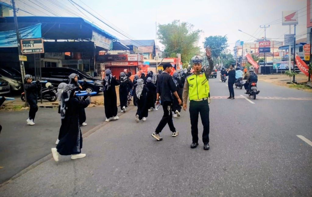 Dalam rangka memastikan kegiatan berjalan aman dan lancar, Polsek Pontianak Kota mengerahkan 4 (empat) personel Lalu Lintas untuk melaksanakan pengaturan arus kendaraan serta pengamanan jalur yang dilalui peserta pawai.