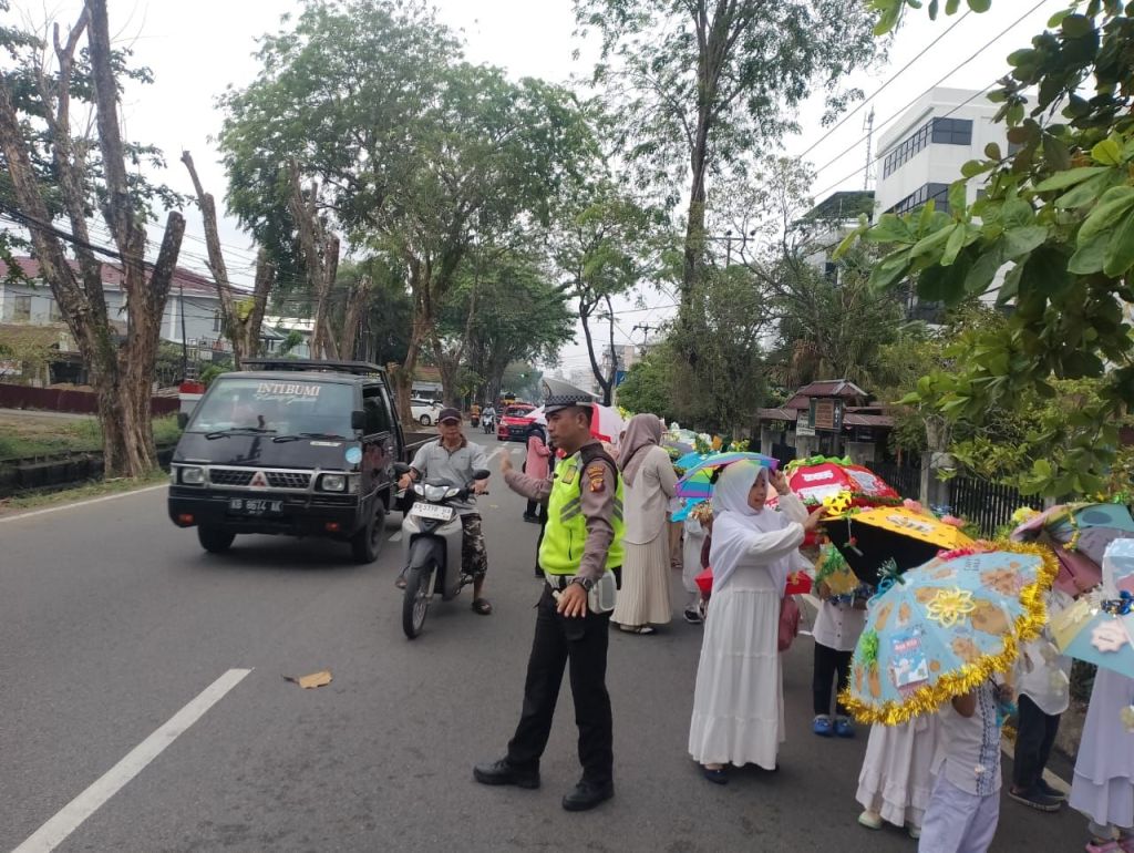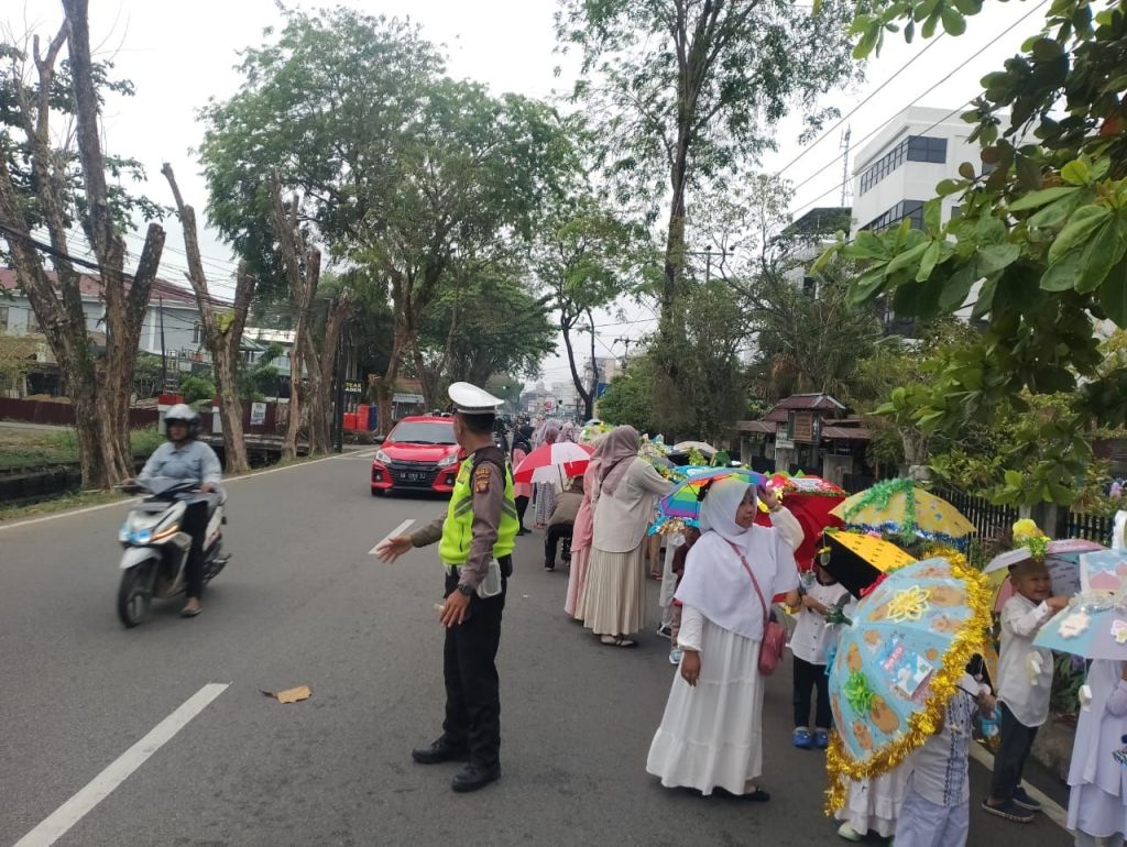 “Kami dari Polsek Pontianak Kota melaksanakan pengamanan dan pengaturan arus lalu lintas guna memastikan kegiatan Pawai Ta’aruf yang dilaksanakan oleh SD Al Mumtaz Pontianak dapat berjalan dengan aman, tertib dan lancar,”Tuturnya.