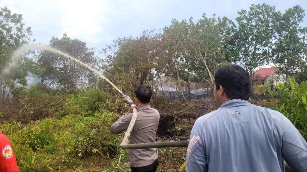 Sejumlah petugas dari Polsek Pontianak Utara bersama Damkar swasta tiba dilokasi selang beberapa saat setelah menerima informasi dari masyarakat terkait kebakaran lahan.