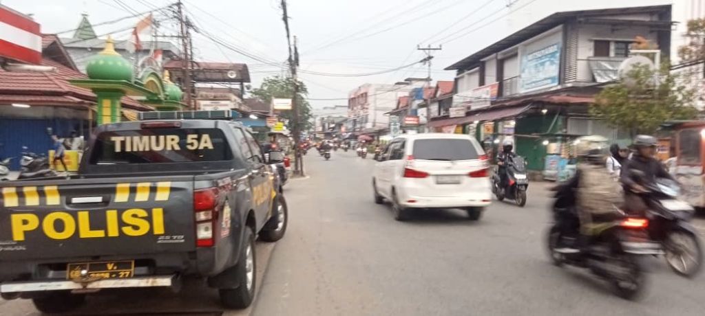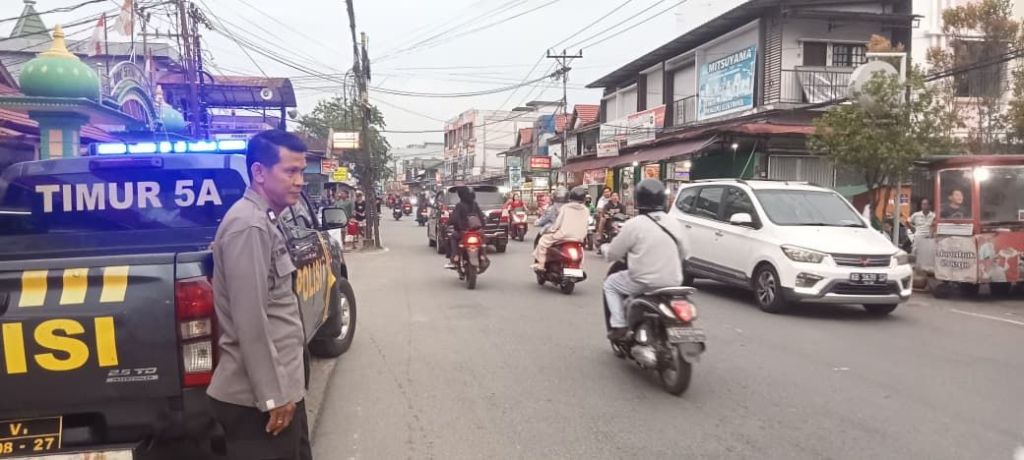 Kegiatan patroli ini difokuskan pada persimpangan jalan utama, kawasan pasar, serta lokasi penjualan takjil yang kerap mengalami lonjakan aktivitas masyarakat pada sore hari selama bulan Ramadan. Personel terlihat melakukan pengaturan lalu lintas guna memastikan arus kendaraan tetap lancar dan mencegah terjadinya kemacetan maupun kecelakaan lalu lintas.