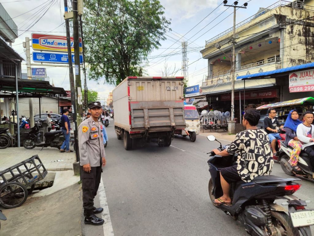 Personel Polsek Pontianak Timur Laksanakan Pengamanan Pasar Juadah di Sejumlah Titik Jalan