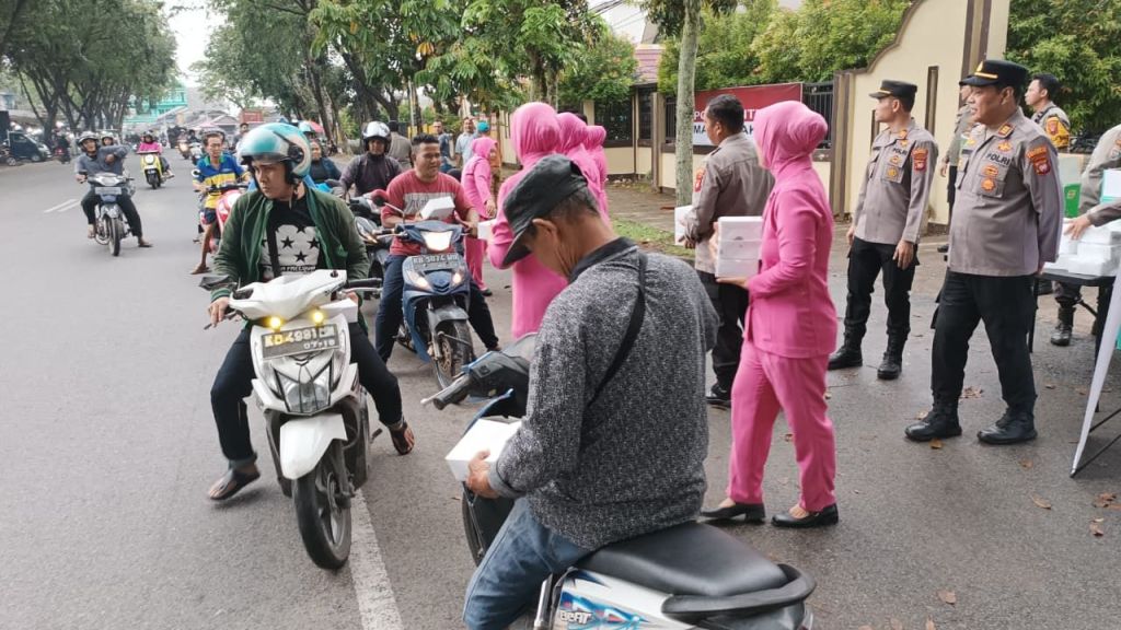 “Melalui kegiatan ini kami ingin berbagi rezeki dengan masyarakat sekaligus menyampaikan pesan kamtibmas agar para pengendara selalu tertib berlalu lintas, melengkapi perlengkapan kendaraan serta menjaga keselamatan diri di jalan,” ujarnya.