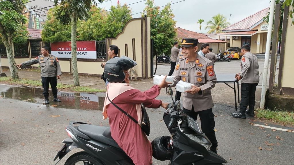 Kegiatan tersebut dipimpin langsung oleh Kapolsek Pontianak Barat yang didampingi oleh Ketua Bhayangkari serta personel Polsek Pontianak Barat. Personil bersama Bhayangkari tampak membagikan paket takjil kepada para pengendara sepeda motor, pengendara sepeda, serta masyarakat yang melintas di depan Mapolsek.