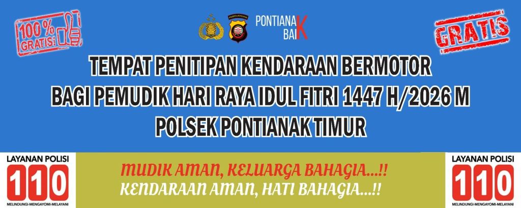 “Polsek Pontianak Timur membuka layanan penitipan kendaraan gratis bagi masyarakat yang akan mudik. Ini sebagai upaya kami untuk memberikan rasa aman kepada warga,” ujar Kapolsek.